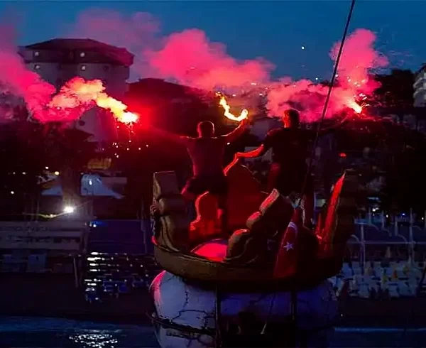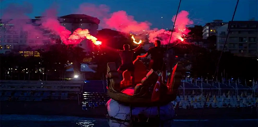 Die Bootsfahrt, die einen ästhetischen Blick auf den Sonnenuntergang in Side bietet, wird auf dem modernen Schiff Big Kral durchgeführt. Die Reise beginnt um 18.00 Uhr am Türkler Ufer, das 45 km von Side entfernt liegt. Sie werden von Ihrem Hotel abgeholt und dann zum Türkler Hauptufer gebracht, wo die wahre aufregende Bootsfahrt beginnt.