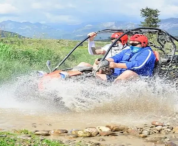 Dołącz do nas na ekscytującym safari buggy w Side! Po przybyciu na miejsce otrzymają Państwo instrukcje oraz obejrzą w telewizji krótki film dotyczący bezpieczeństwa, zanim rozpoczniemy przygodę. Jazda buggy to około 20 km tras, na których możesz się zmoczyć i zabłocić – ale nie martw się, mamy prysznice, w których możesz się później przebrać w czyste ubrania. Po zakończeniu przejażdżki będziesz mógł obejrzeć swoje wspomnienia na DVD i kupić je jako pamiątkę. Na koniec odwieziemy Cię z powrotem do hotelu, szczęśliwego i spełnionego z podróży.