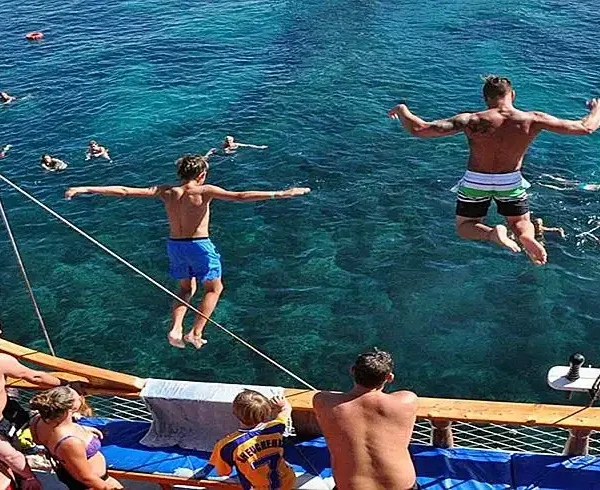 Our first and main break takes place at the unique Manavgat Boğaz Beach. This interesting beach is a special place where the fresh water of the Manavgat River meets the salty water of the Mediterranean Sea. Here you can swim in both fresh and salt water on the same beach. You can also relax on the sandy beach, sunbathe, or enjoy optional water sports such as jet skiing. During this break, lunch is served on the boat in this beautiful natural setting.