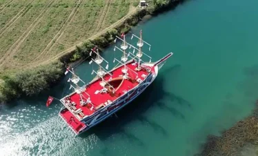 Many boat tours are organized in the Side and Manavgat region, especially with fun pirate-style boats. Among these options, the Side boat tour is one of the most popular and enjoyable experiences. The tour starts from a private pier located on the Manavgat River. Our boat first sails along the river, allowing you to enjoy the peaceful natural scenery and beautiful river views.