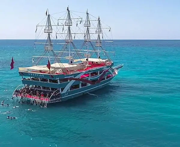 The Side and Manavgat region is one of the best locations for boat tours thanks to its clear sea, long sandy beaches, scenic bays, and the famous Manavgat River. One of the most popular excursions in this area is the Side Dolphin Island boat tour, which follows a scenic route from Side towards the western coast of Alanya. The tour takes its name from the small and lovely Dolphin Island, located along the route where dolphins are often seen.