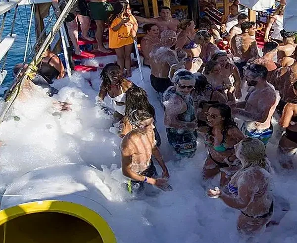 After the final swimming break, the boat begins the return journey along the Side and western Alanya coastline, where dolphins are sometimes seen during the cruise. Throughout the Side Dolphin Island boat tour, there are also animations, music, and a fun foam party on board, creating a lively and entertaining atmosphere.